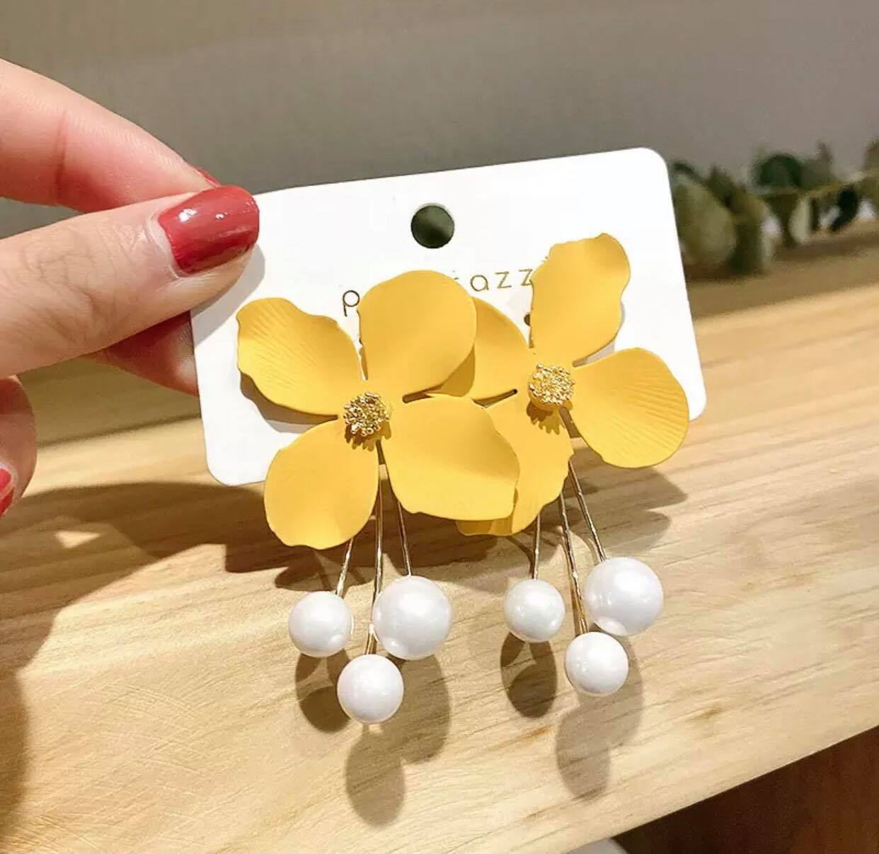 ARETE FLOR AMARILLA PERLAS BLANCAS