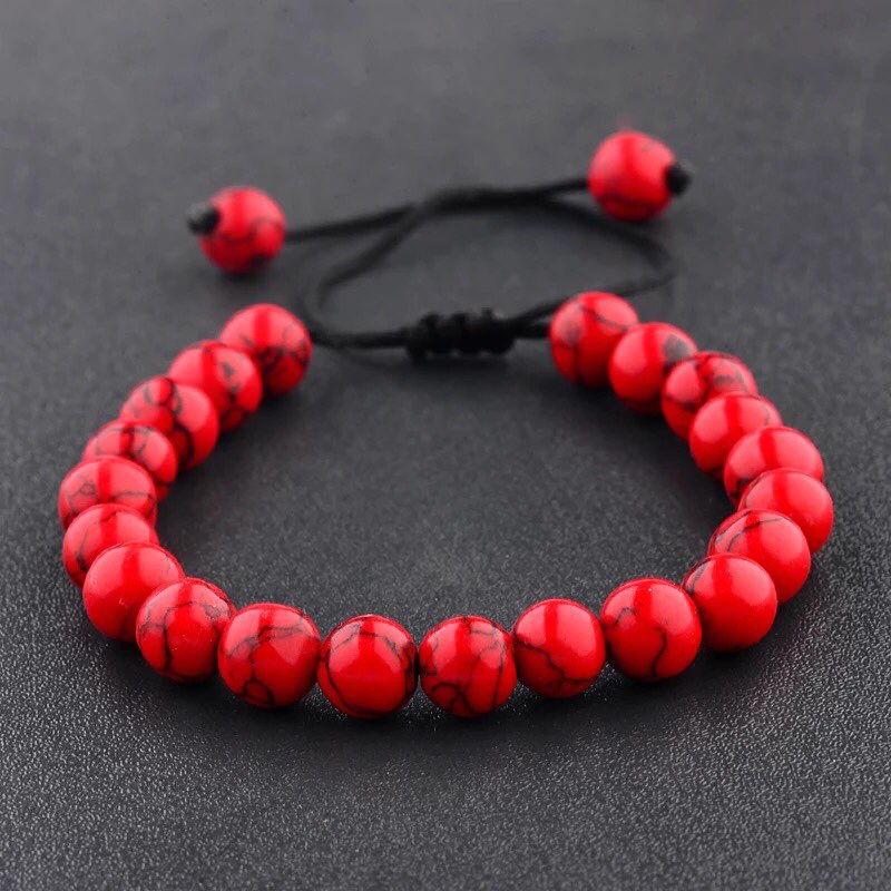 PULSERA PIEDRA ROJA 8MM CUERDA
