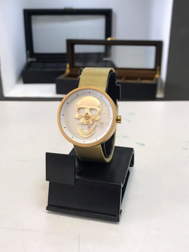 RELOJ SKULL MALLA DORADO
